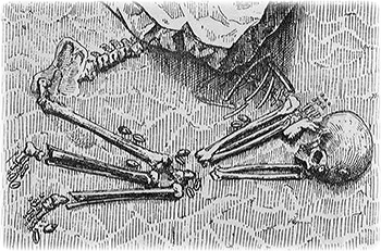 Relevé d’É. Masssénat du squelette lors de la découverte.